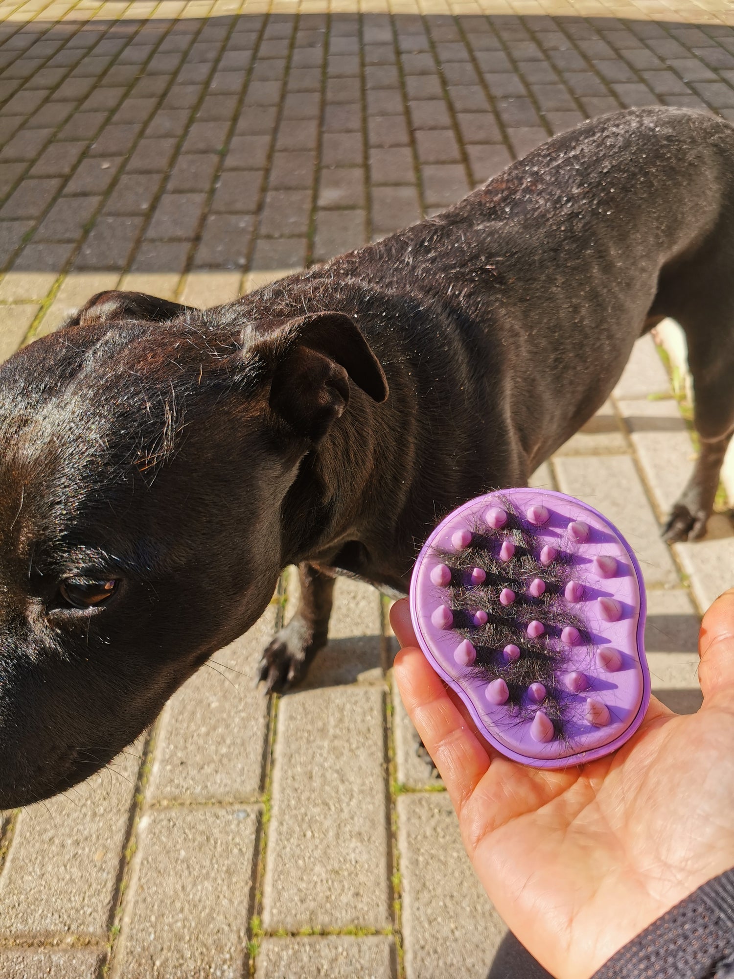 Offrez à votre Staffie un moment de bien-être inégalé avec notre brosse magique, spécialement conçue pour les poils courts et denses des races comme le Staffordshire Bull Terrier.